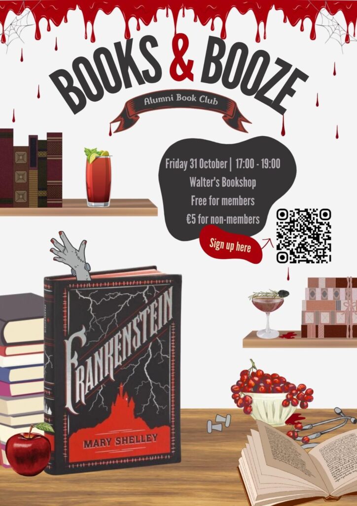 As always, the Books & Booze session will take place in Walter’s Bookshop from 17:00 – 19:00. You can sign up here by using the QR code below.